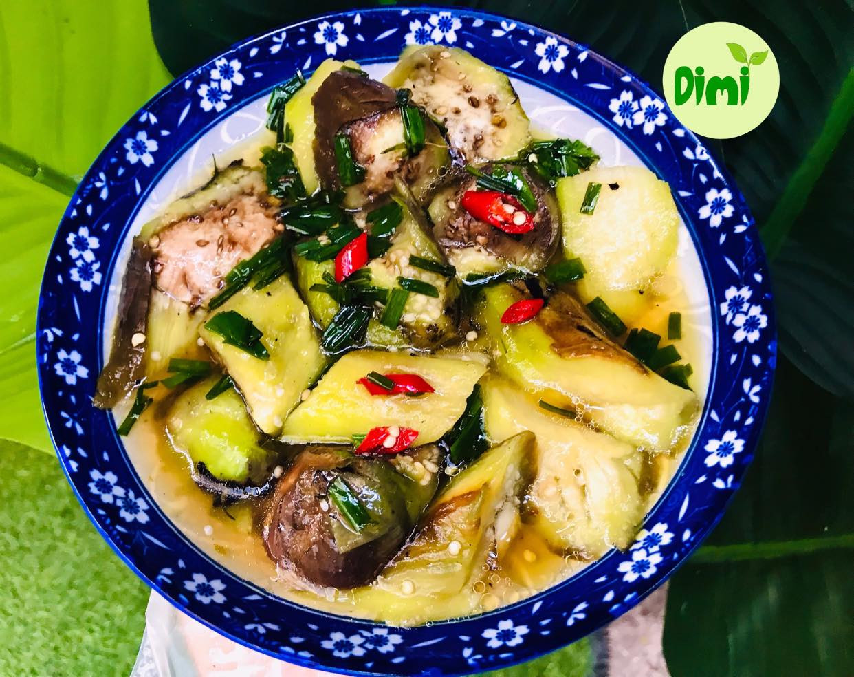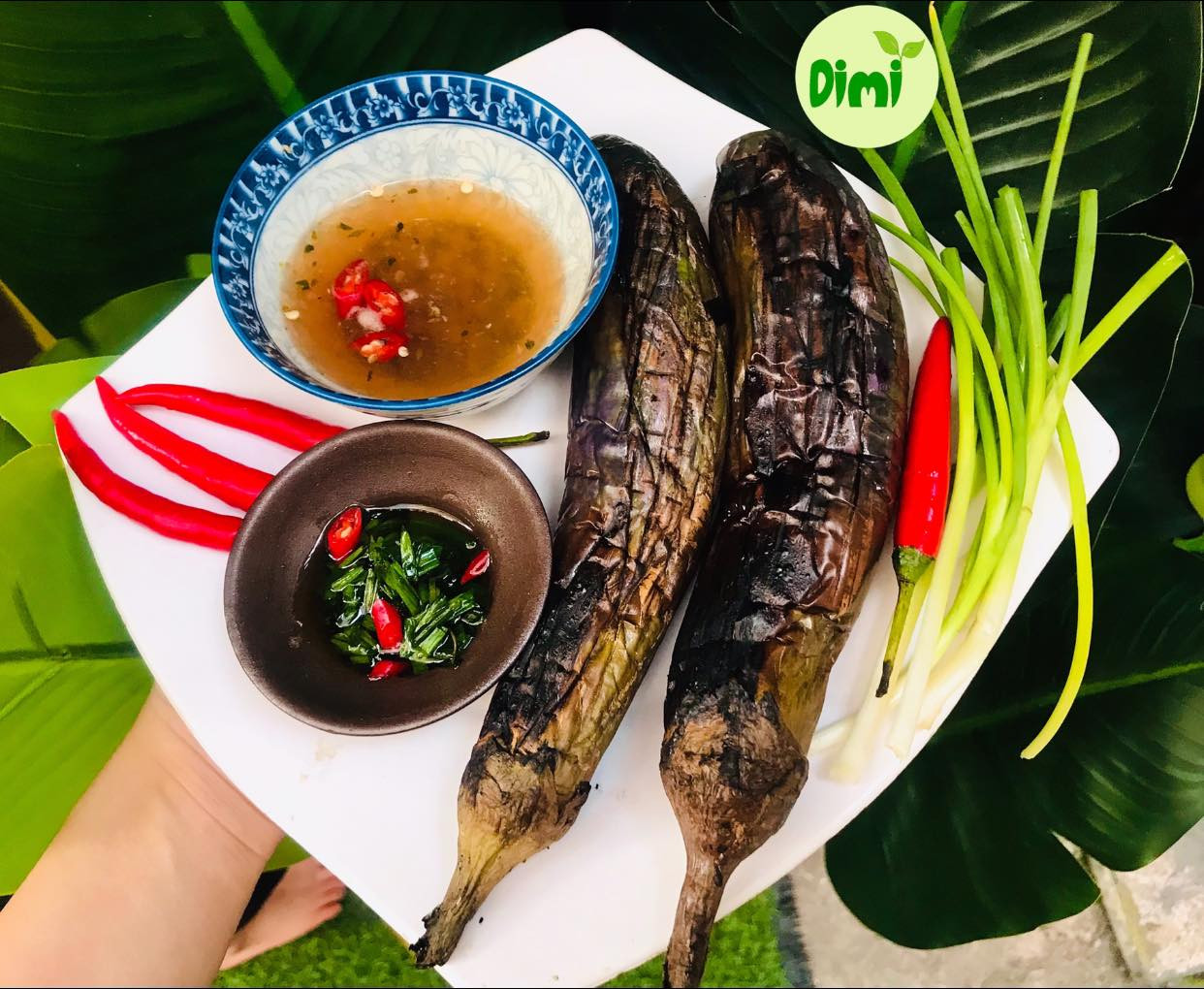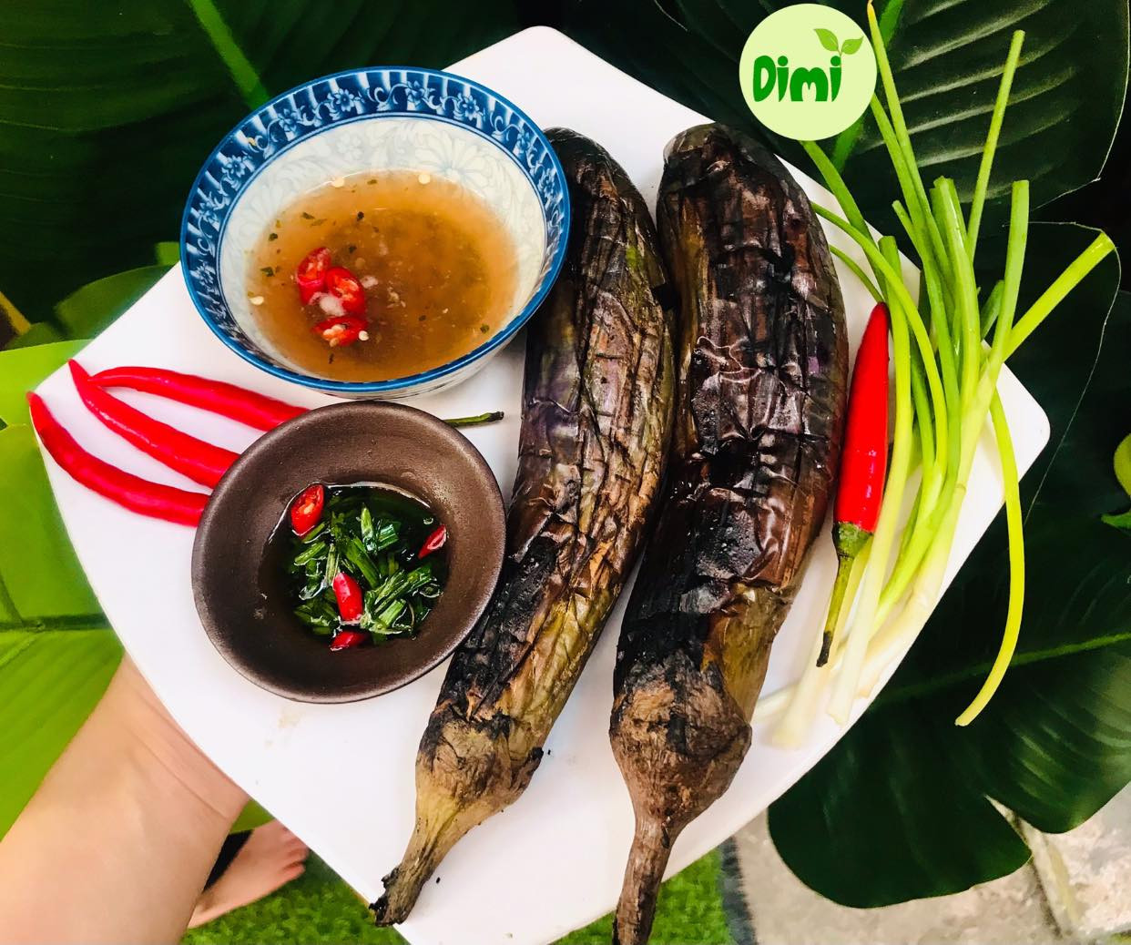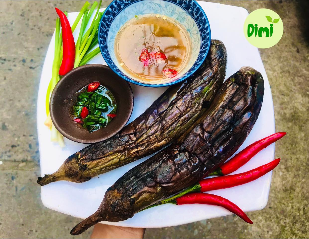 CÀ TÍM NƯỚNG MẮM HÀNH- cà tím thơm ngọt, trộn thêm hành lá phi hòa tan trong nước mắm ớt chua ngọt , cực lôi cuốn vị giác.